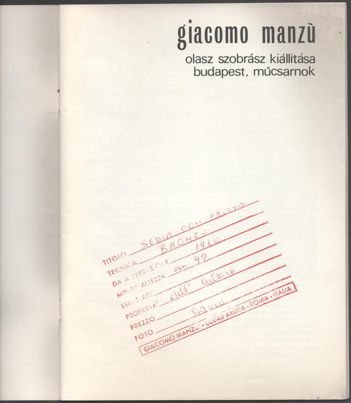 Manzú. Giacomo Manzú szobrász kiállításának katalógusa. Szerk.: Néray ... https://www.darabanth.com/hu/515-Filatelia-kepeslap-numizmatika-mutargy-konyv-papirregiseg-ekszer-aukcio/518.0/Konyvek/Konyvek-Epiteszet-muveszet~1042/Manzu-Giacomo-Manzu-szobrasz-kiallitasanak-katalogusa-Szerk-Neray-Katalin-Aradi-Nora-~II3485145