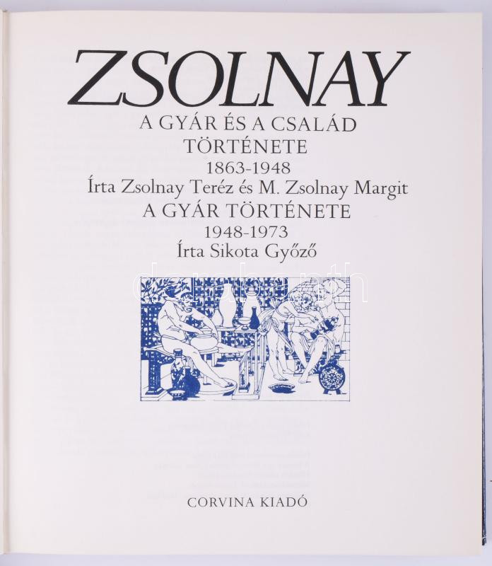 Zsolnay Teréz - M. Zsolnay Margit - Sikota Győző: Zsolnay. A gyár és a család története 1863-1948. A gyár története 1948-1973. Bp., 1975, Corvina. Második kiadás. Fekete-fehér és színes fotókkal illusztrálva. Kiadói egészvászon-kötés, minimálisan sérült kiadói papír védőborítóban.