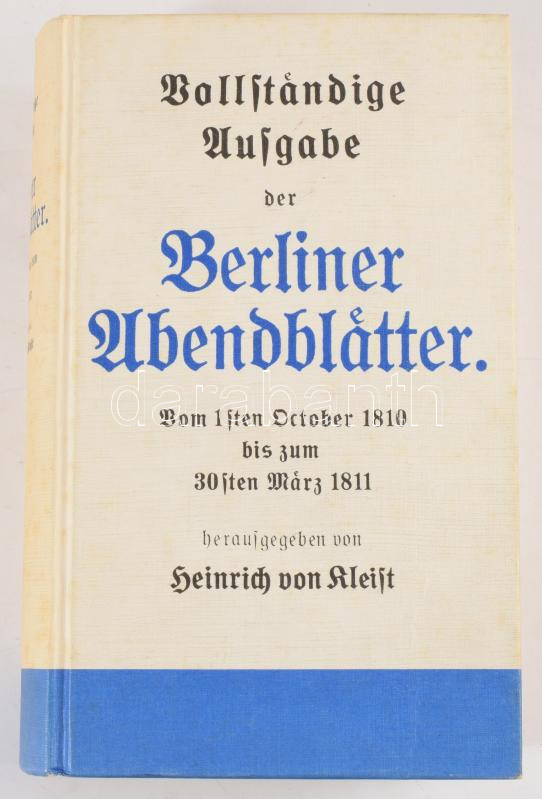 Vollständige Ausgabe der Berliner Abendblätter. Vom 1sten Oktober 1810... https://www.darabanth.com/hu/515-Filatelia-kepeslap-numizmatika-mutargy-konyv-papirregiseg-ekszer-aukcio/518.0/Konyvek/Konyvek-Idegen-nyelvu-konyvek~1052/Vollstandige-Ausgabe-der-Berliner-Abendblatter-Vom-1sten-Oktober-1810-bis-zum-30sten-Marz-1811-~II3486567
