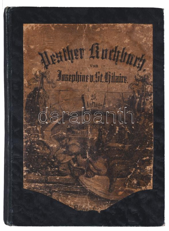 St. Hilaire, Josephine von: Die wahre Kochkunst, oder: neuester geprüftes und vollständiges Pester Kochbuch. [A főzés igaz művészete, avagy a legújabb Pesti Szakácskönyv]. Bp., 1873, Eggenberger IV + 518 p. Fünftundzwanzigste mit den neuesten Kochrecepten vermehrte Auflage. Német nyelven. Egészvászon kötés, az eredeti papírborító felhasználásával, egy lap restaurált