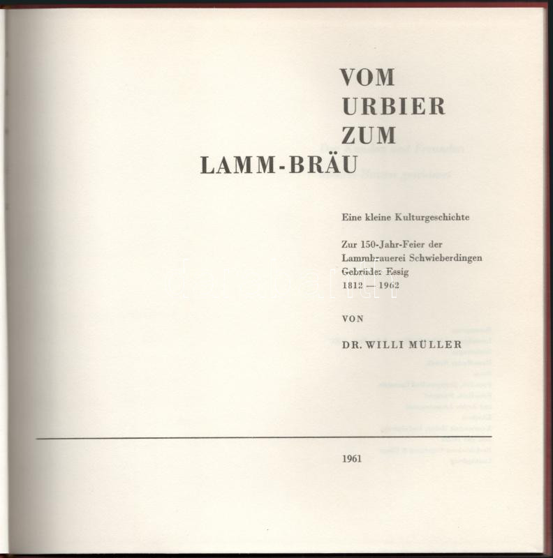 Willi Müller: Vom Urbier zum Lamm-Bräu. Eine kleine Kulturgeschichte. ... https://www.darabanth.com/hu/515-Filatelia-kepeslap-numizmatika-mutargy-konyv-papirregiseg-ekszer-aukcio/518.0/Konyvek/Konyvek-Konyha-es-kert~1043/Willi-Muller-Vom-Urbier-zum-Lamm-Brau-Eine-kleine-Kulturgeschichte-Ludwigsburg-1961-Buchdruck~II3467969