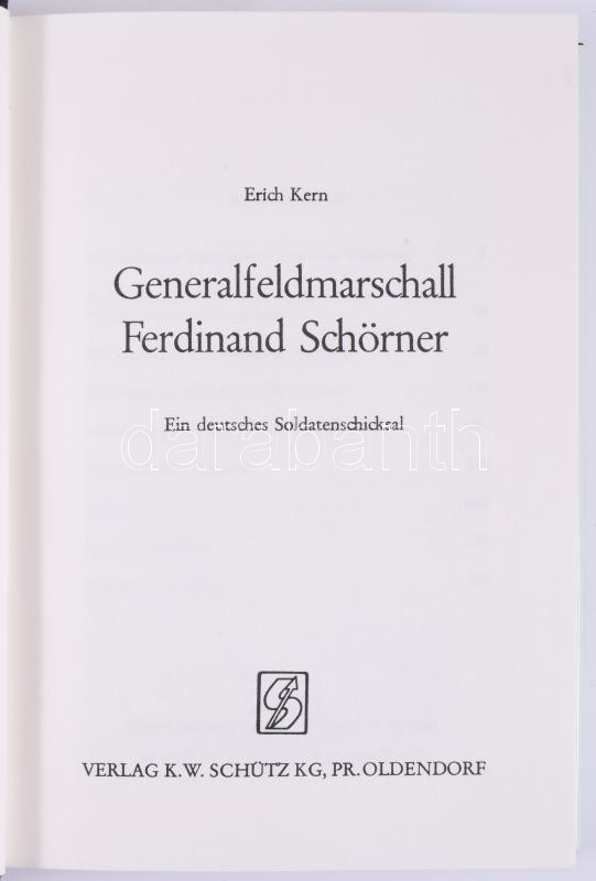 Erich Kern: Generalfeldmarschall Ferdinand Schörner. Ein deutsche Soldatenschicksal. Pr. Oldendorf,1985.,K. W. Schötz KG. Német nyelven. Fekete-fehér képanyaggal illusztrált. Kiadói egészvászon-kötés, kiadói papír védőborítóban.