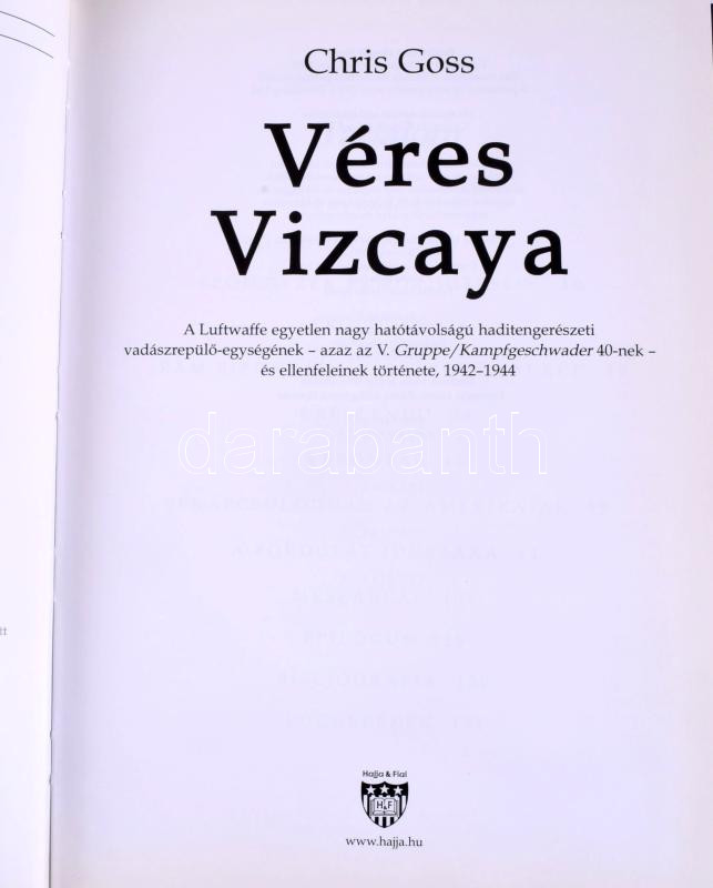 Goss, Chris: Véres Vizcaya. Debrecen, 2001, Hajja & Fiai. Kiad... https://www.darabanth.com/hu/515-Filatelia-kepeslap-numizmatika-mutargy-konyv-papirregiseg-ekszer-aukcio/518.0/Konyvek/Konyvek-Militaria-Katonasag~1041/Goss-Chris-Veres-Vizcaya-Debrecen-2001-Hajja-Fiai-Kiadoi-kartonalt-kotes-jo-allapotban~II3488827