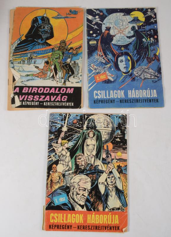 1982 Csillagok háborúja képregények (1-2. rész). Képregényfüzet. Korcsmáros Pál rajzaival. Bp., Ifjúsági Lapkiadó Vállalat, 32 p. Kiadói tűzött papírkötés, jó állapotban + A birodalom visszavág. Hiányzó hátsó borítóval.