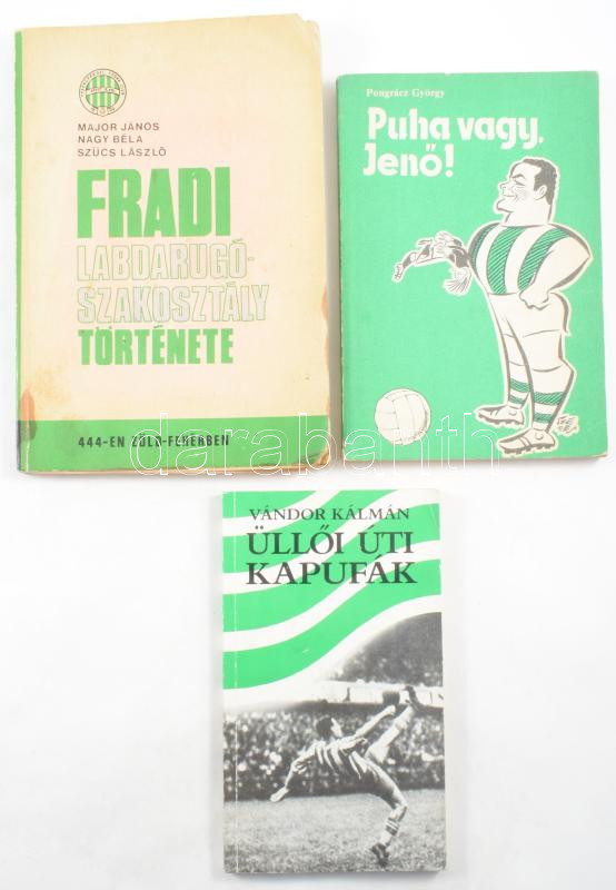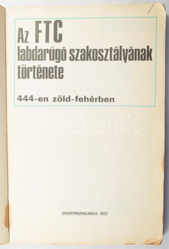 Major János- Nagy Béla - Szücs László: Fradi labdarúgó szakosztály története. 444-en zöld-fehérben. Bp, 1972, Sportpropaganda. Benne Sallay Mihály: Öreg Fiúk kottával. Kiadói papírkötés, foltos, kopott borítóval, az elülső borító felső sarkán kis hiánnyal.;