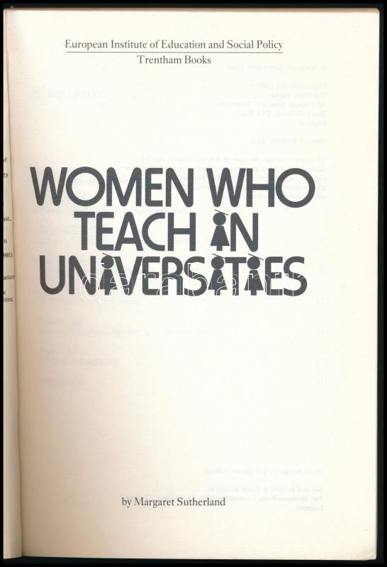 Leírás: Margaret Sutherland: Woman who teach on universities. Trentham, 1985, Trentham Books. Angol nyelven. Kiadói papírkötés.