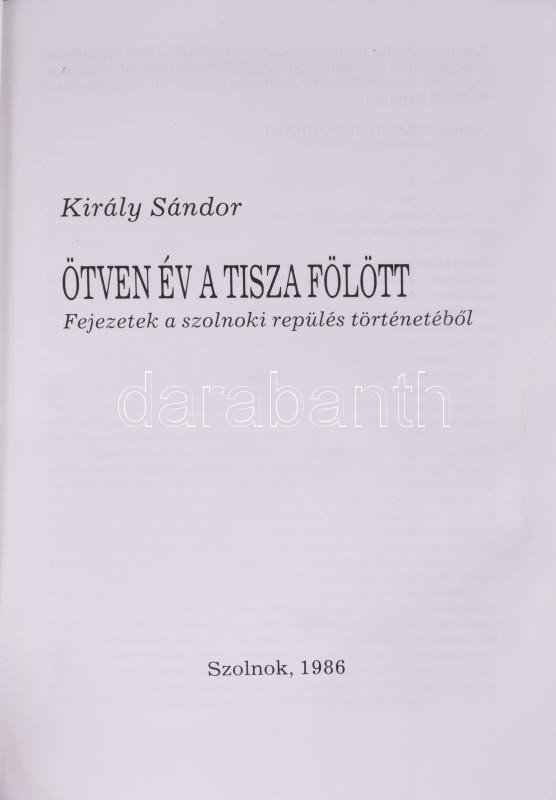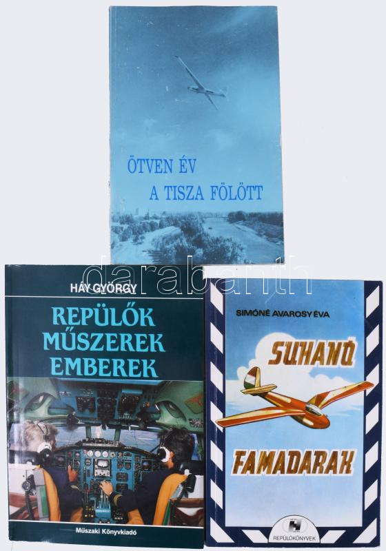 3 db repüléssel kapcsolatos könyv: Simóné Avarosy Éva: Suhanó famadarak. A vitorlázórepülés első fél évszázada. Bp., 1989, Háttér Lap- és Könyvkiadó. Kiadói papírkötés. + Király Sándor: Ötven év a Tisza fölött. Fejezetek a szolnoki repülés történetéből. Szolnok, 1986, Szolnok Megyei Lapkiadó Vállalat. Kiadói papírkötés, kisebb ázásnyomokkal. + Háy György: Repülők, műszerek, emberek. Bp., 1990, Műszaki Könyvkiadó. Kiadói papírkötés.