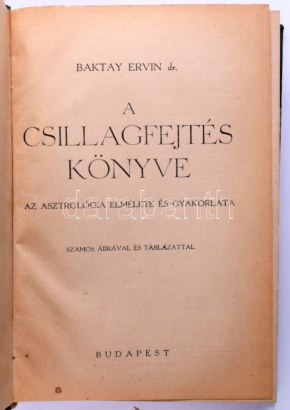 Baktay Ervin dr.: A csillagfejtés könyve. Az asztrológia elmélete és gyakorlata. Bp., Szerző. Félvászon kötés, kopottas állapotban.