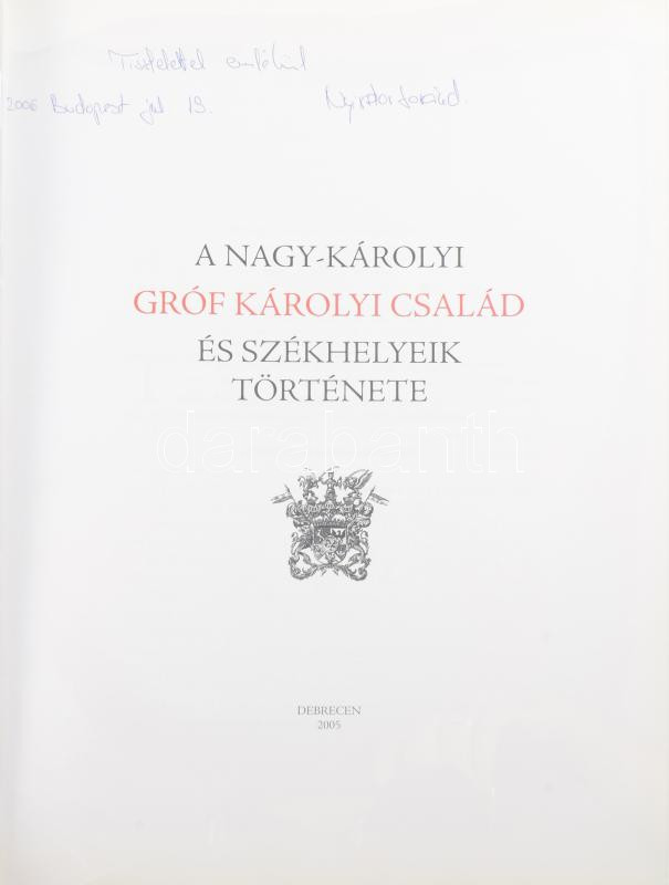 A Nagy-károlyi gróf Károlyi család és székhelyeik története Debrecen, ... https://www.darabanth.com/hu/515-Filatelia-kepeslap-numizmatika-mutargy-konyv-papirregiseg-ekszer-aukcio/518.0/Konyvek/Konyvek-Tortenelem~1040/A-Nagy-karolyi-grof-Karolyi-csalad-es-szekhelyeik-tortenete-Debrecen-2005-Kiadoi-kartona~II3467002