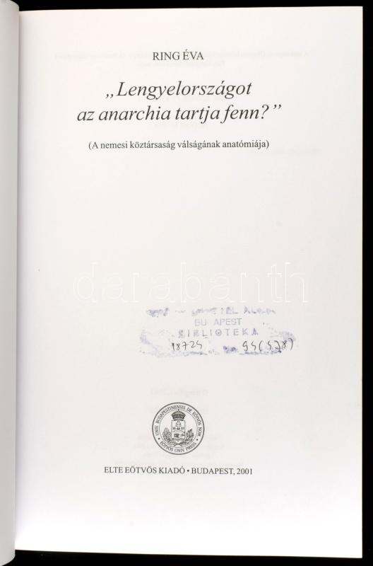 Leírás: Ring Éva: Lengyelországot az anarchia tartja fenn? ELTE Eötvös Kiadó, 2001. Kiadói papírkötés, volt könyvtári könyv