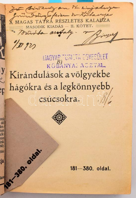 I. kötet: Előszó A Általános ismeretek, Gyakorlati tudnivalók, A Tátra alja.;
