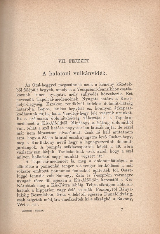 Cholnoky Jenő (1870-1950) földrajztudós, földrajzi író klasszikus kismonográfiája a Balatonról. Oldalszámozáson belül szövegközti és egész oldalas geológiai ábrákkal, térképvázlatokkal. A munka elsősorban a tó geológiai és meteorológiai jellegzetességeire koncentrál, de röviden kitér a térség történetére és emberföldrajzára is.