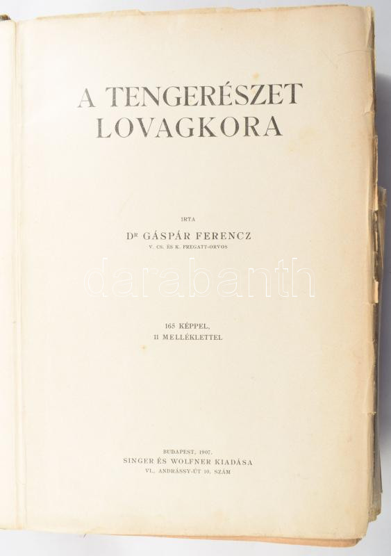 Gáspár Ferencz: A Föld körül VI. köt.: A tengerészet lovagkora. Bp., 1907, Singer és Wolfner. Gazdag képanyaggal illusztrált. Kiadói egészvászon-kötés, kopott, foltos borÃtóval, sérült gerinccel, kijáró lapokkal, megviselt állapotban.