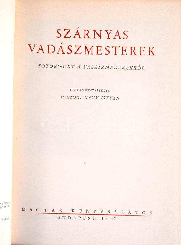 Homoki Nagy István: Szárnyas vadészmesterek. Fotóriport a vadászmadara... https://www.darabanth.com/hu/515-Filatelia-kepeslap-numizmatika-mutargy-konyv-papirregiseg-ekszer-aukcio/518.0/Konyvek/Konyvek-Vadaszat~1044/Homoki-Nagy-Istvan-Szarnyas-vadeszmesterek-Fotoriport-a-vadaszmadarakrol-Bp-1947-Magyar-~II3490026