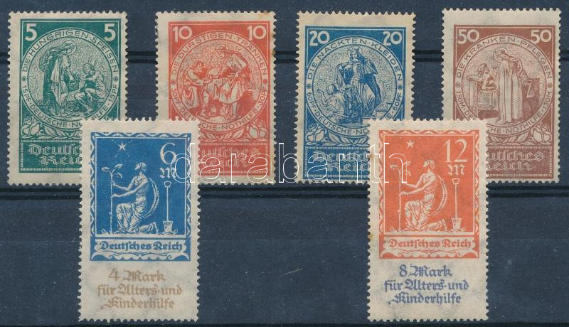 1922-1924 Segélybélyeg és Jótékonyság sor Mi Mi 233-234, 351-354 (Mi E... https://www.darabanth.com/hu/515-Filatelia-kepeslap-numizmatika-mutargy-konyv-papirregiseg-ekszer-aukcio/518.0/Kulfoldi-filatelia-es-postatortenet/Deutsches-Reich~344/1922-1924-Segelybelyeg-es-Jotekonysag-sor-Mi-Mi-233-234-351-354-Mi-EUR-160-rozsdafoltok-~II3486515