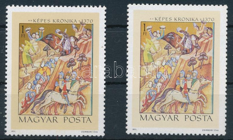 Leírás: 1971 Képes krónika 1Ft arany színnyomat nélkül + támpéldány / Mi 2713 gold colour omitted