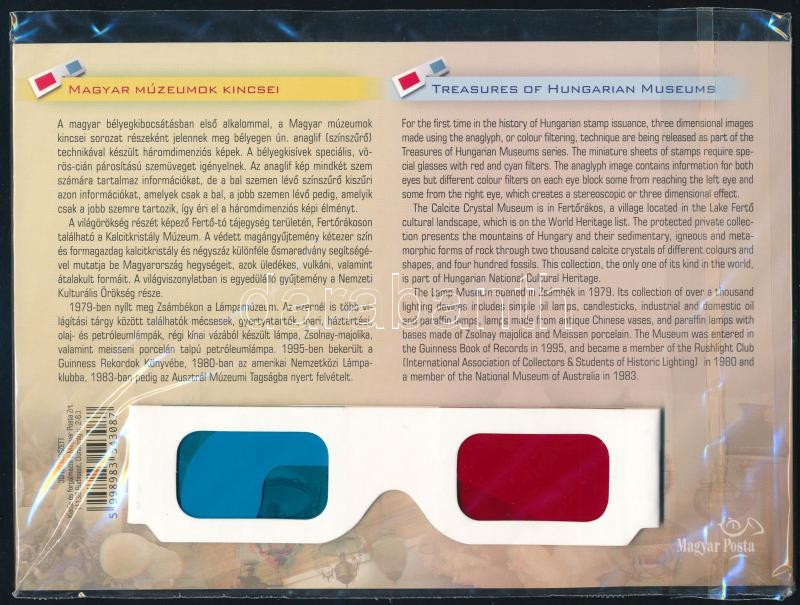 Leírás: 2013 Magyar Múzeumok kincse (II.) 3D bélyegszett, 3D szemüveggel
