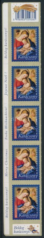 Leírás: 2020 Karácsony öntapadós vonalkódos ötöscsík / Mi 6163 stripe of 5 with bar code