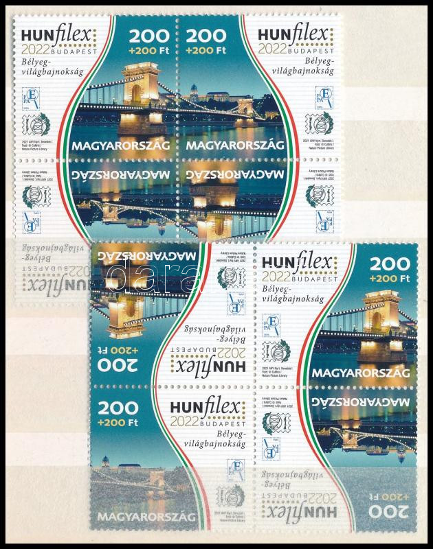 2022 Hunfilex bélyeg fordított állású négyestömbökben https://www.darabanth.com/hu/515-Filatelia-kepeslap-numizmatika-mutargy-konyv-papirregiseg-ekszer-aukcio/518.0/Magyar-filatelia-es-postatortenet/2020-tol-napjainkig~125/2022-Hunfilex-belyeg-forditott-allasu-negyestombokben~II3492086
