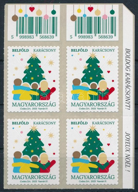2025 Karácsony négyestömb vonalkódokkal, jobboldali ívszéli jókívánság... https://www.darabanth.com/hu/515-Filatelia-kepeslap-numizmatika-mutargy-konyv-papirregiseg-ekszer-aukcio/518.0/Magyar-filatelia-es-postatortenet/2020-tol-napjainkig~125/2025-Karacsony-negyestomb-vonalkodokkal-jobboldali-ivszeli-jokivansagokkal~II3489847