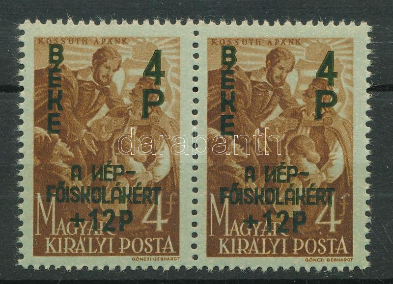 1945 Béke I. 4P/4f pár, mindkét bélyeg az "N" betű tükörnyom... https://www.darabanth.com/hu/515-Filatelia-kepeslap-numizmatika-mutargy-konyv-papirregiseg-ekszer-aukcio/518.0/Magyar-filatelia-es-postatortenet/A-II-inflacio-idoszaka-1945-1946~116/1945-Beke-I-4P4f-par-mindket-belyeg-az-N-betu-tukornyomataval-12000~II3491628