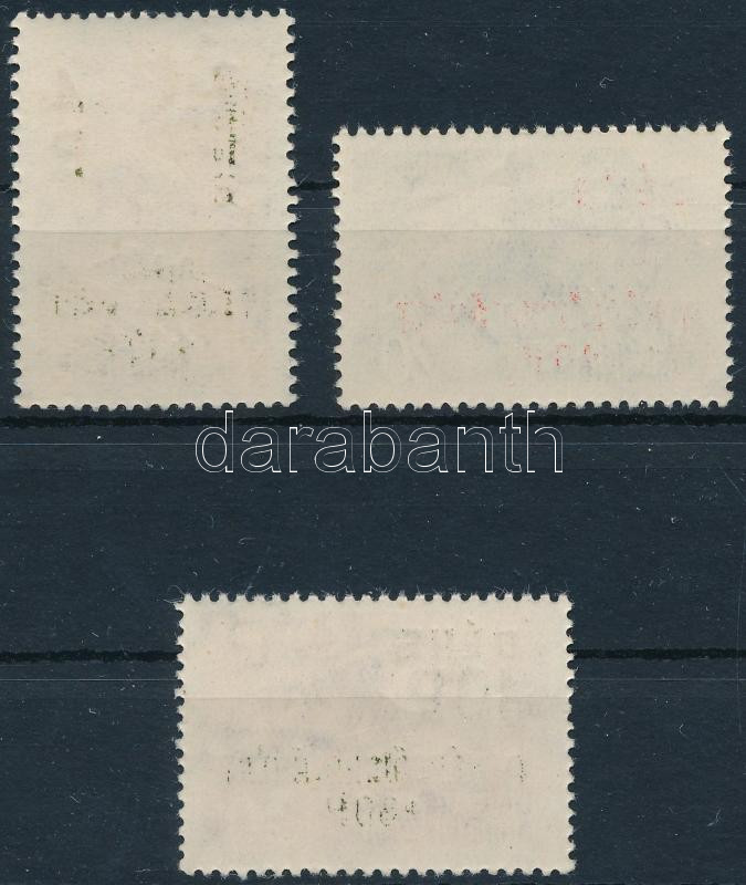 Leírás: 1945 Béke I. sor 3 értéke a felülnyomat részleges gépszínátnyomatával
