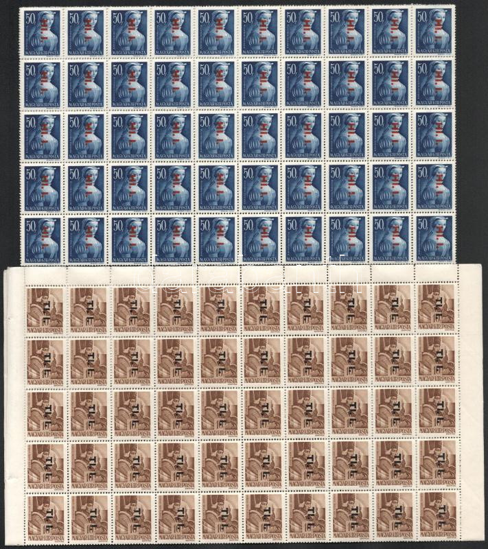 Leírás: 1946 Betűs I. kiadás TI.I./10f hajtott teljes ívben + HI.I./50f hajtott teljes ívben ívszélek nélkül / missing margin