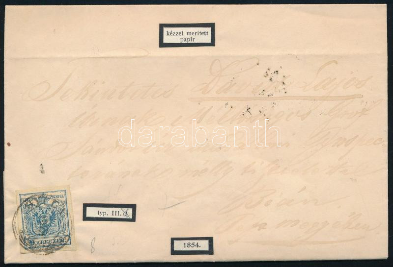 Leírás: 1854 Levél III. típusú 9kr bélyeggel bérmentesítve, "GYULA" - "PESTH"