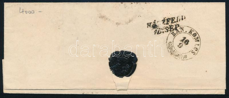 Leírás: ~1856 9kr HP IIc. levélen "PESTH" - "BÁN.KOMLOS" - "HACZFELD"
