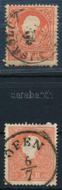 Leírás: 1858 5kr I. és II. típusú bélyeg, "MISKOLCZ" + "OFEN"