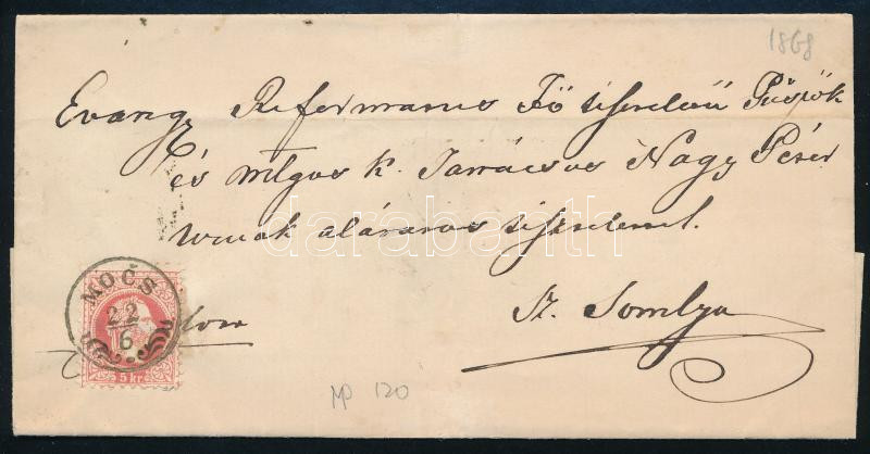 Leírás: 1868 5kr levélen "MOCS" - Sz. Somlyó