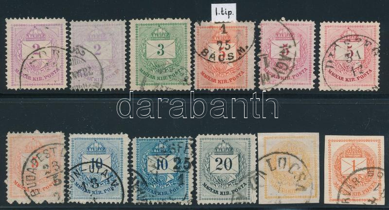 Leírás: 1874 Színesszámú krajcáros sor "A" fogazással (13), I. típusú 5kr bélyeggel, színváltozatokkal, 2 Hírlapbélyeggel