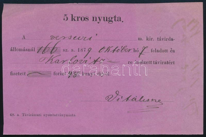 1879 5kr díjnyugta (40.000) / Telephone fee receipt https://www.darabanth.com/hu/515-Filatelia-kepeslap-numizmatika-mutargy-konyv-papirregiseg-ekszer-aukcio/518.0/Magyar-filatelia-es-postatortenet/Az-1874-1899-kozotti-krajcaros-kiadasok~95/1879-5kr-dijnyugta-40000-Telephone-fee-receipt~II3493004