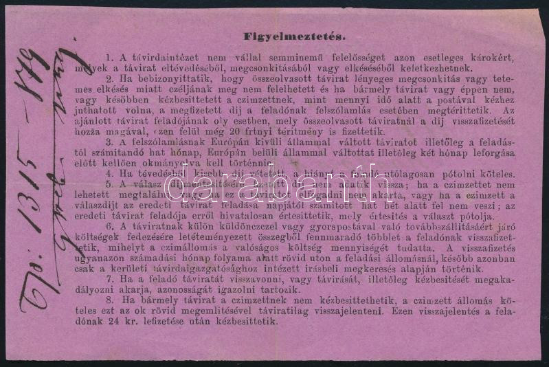 Leírás: 1879 5kr díjnyugta (40.000) / Telephone fee receipt