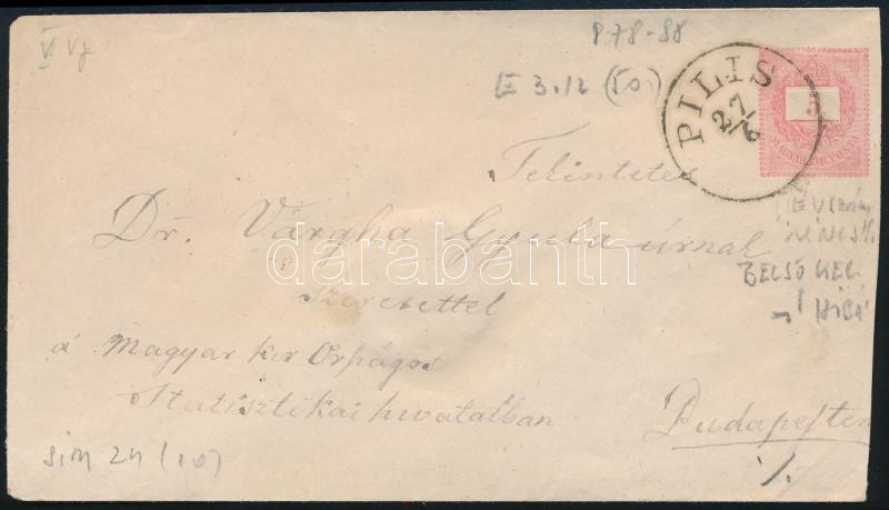 Leírás: 1881 5kr díjjegyes boríték "PILIS"