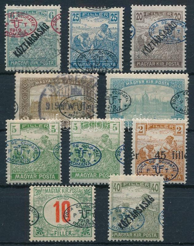 Leírás: Debrecen I. 1919 10 db bélyeg elcsúszott felülnyomással, Bodor vizsgálójellel