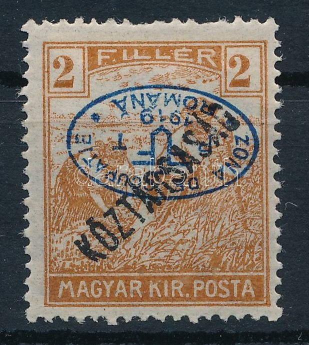 Leírás: Debrecen I. 1919 II. lemez Arató 2f (MBK 54a) fordított felülnyomás, Bodor szakértői véleménnyel (22.000)