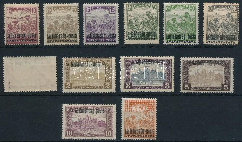 Leírás: Nyugat-Magyarország III. 1921 12 klf bélyeg Bodor vizsgálójellel, közte 1K hátoldali felülnyomás nélkül (7.500)