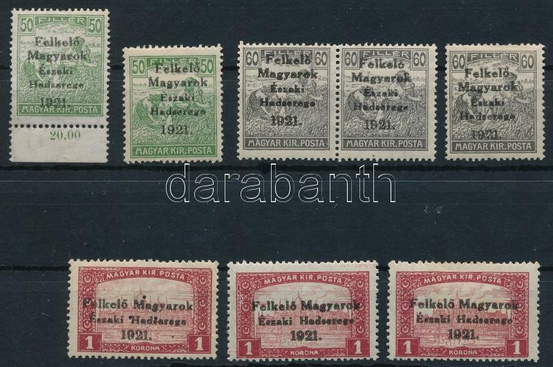 Leírás: Nyugat-Magyarország V. 1921 8 db bélyeg Bodor vizsgálójellel, közte hármaslyukasztás, pár (9.000)