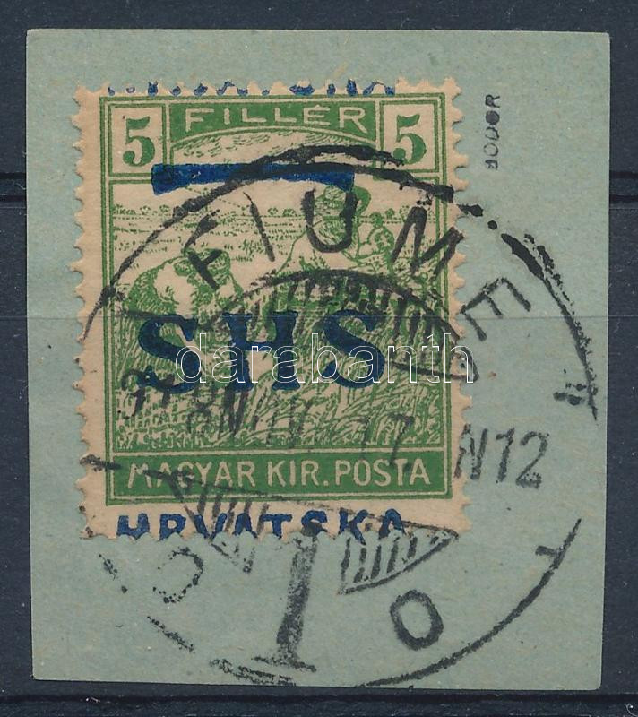 Leírás: SHS 1918 Arató 5f bélyeg "FIUME / 1 O" felülnyomattal, Bodor vizsgálójellel