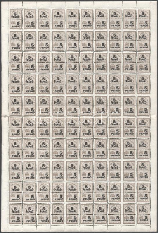 Leírás: Számlailleték bélyeg 1945 5P hajtott 100-as teljes ív (150.000)