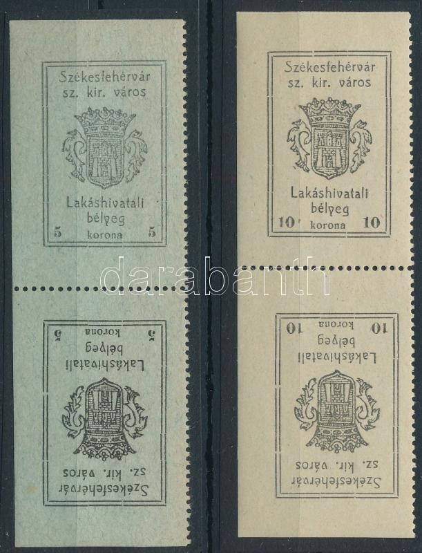 Leírás: Székesfehérvár sz. kir. város 2 klf Lakáshivatali bélyeg fordított állású pár