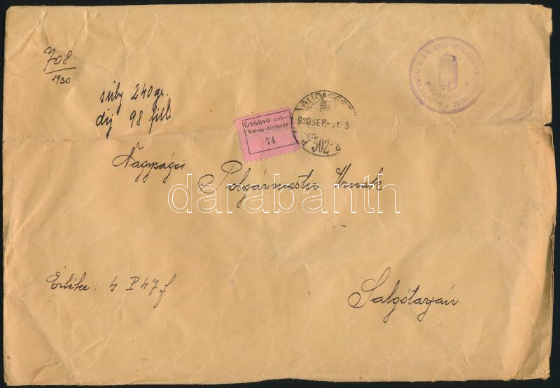 Leírás: 1930 Értéklevél 3 db bélyeggel