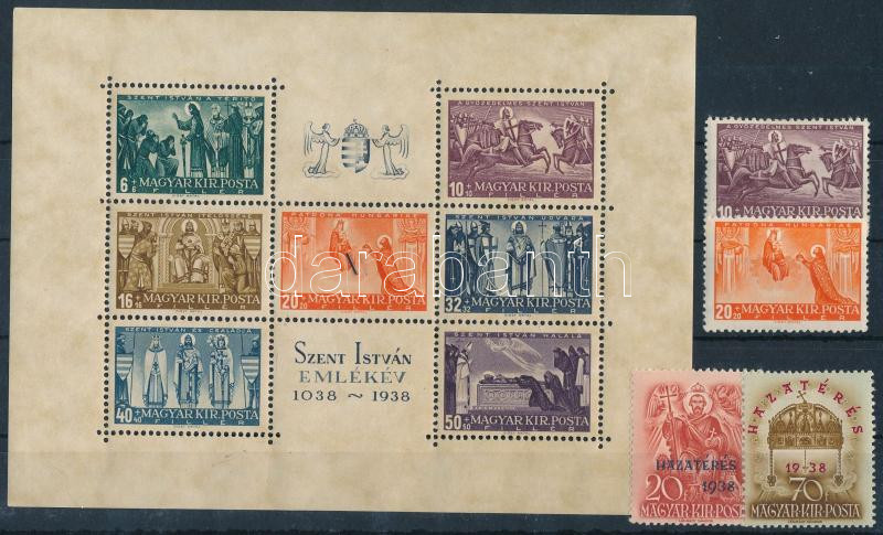 Leírás: 1938 Szent István pár + blokk + Hazatérés sor (10.500)