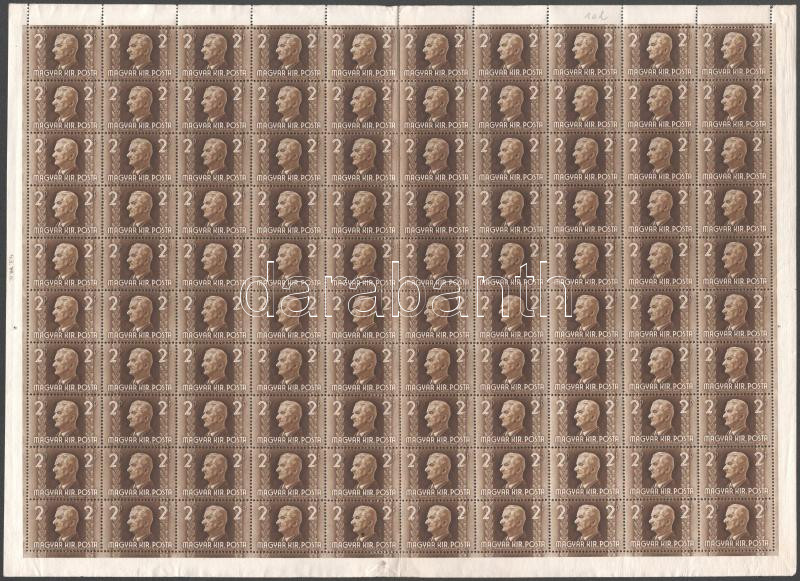 1941 Kormányzói arcképsor (II.) 2P teljes 100-as ív https://www.darabanth.com/hu/515-Filatelia-kepeslap-numizmatika-mutargy-konyv-papirregiseg-ekszer-aukcio/518.0/Magyar-filatelia-es-postatortenet/Pengo-idoszak-1926-1944~113/1941-Kormanyzoi-arckepsor-II-2P-teljes-100-as-iv~II3491917