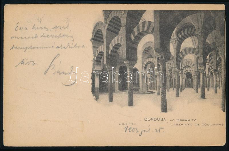 Leírás: 1903 Bardos Remig pannonhalmi apát (1920-1932) autográf Mattyasovszky Mariannénak Cordobából.