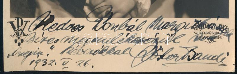Leírás: 1932 Rősler Endre (külföldön Andreas Rösler) (1904-1963) Kossuth-díjas operaénekes (tenor) autográf aláírása és sorai őt ábrázoló fotón, 17,5x11,5 cm