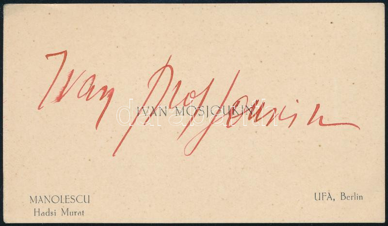 Ivan Mosjoukine / Iwan Mosjukin / Ivan Mozzhukhin (1889-1939) orosz né... https://www.darabanth.com/hu/515-Filatelia-kepeslap-numizmatika-mutargy-konyv-papirregiseg-ekszer-aukcio/518.0/Mutargy-papirregiseg-egyeb/Alairas~1060/Ivan-Mosjoukine-Iwan-Mosjukin-Ivan-Mozzhukhin-1889-1939-orosz-nemafilm-szinesz-autograf-al~II3221168
