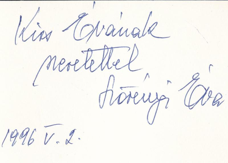 Leírás: Szörényi Éva (1917-2009) színésznő saját kézzel dedikált fotója