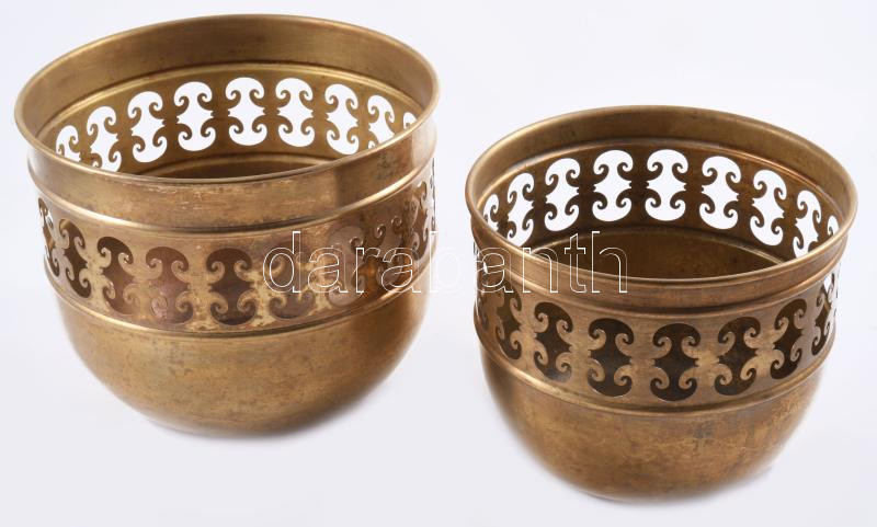 Leírás: 2 darab díszes réz kaspó, m: 12-14 cm